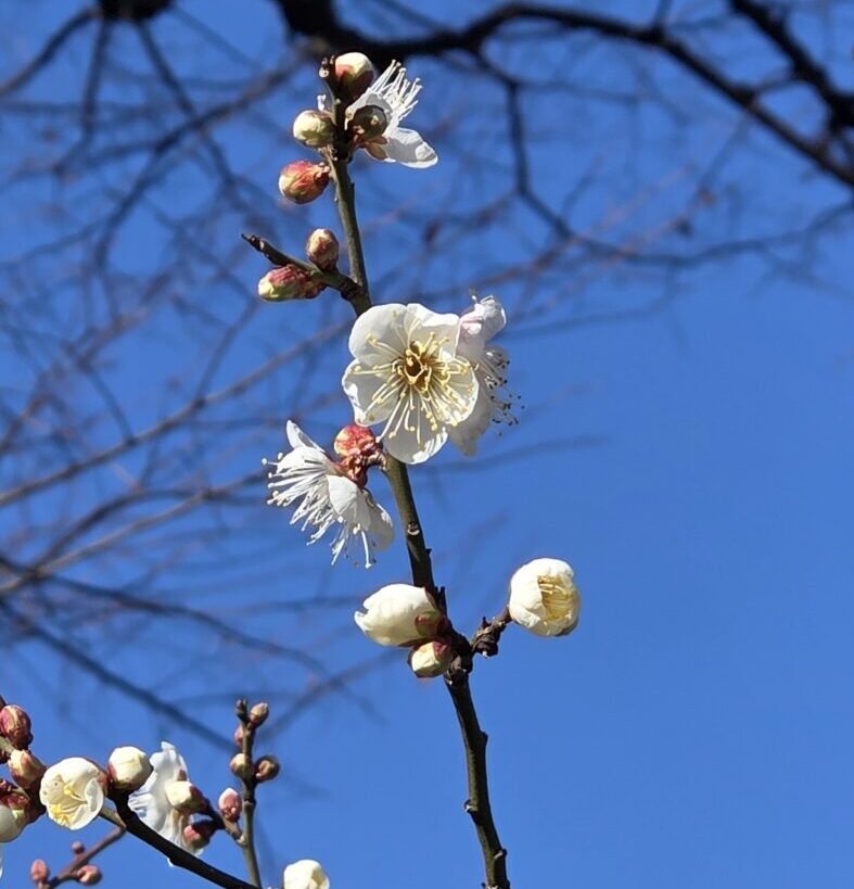 今朝の最低気温は1度と冷え込みました、起きるのがつらいですね。 でも隅田公園では梅がほころんでいました。 この寒空に凛と咲く白梅を見て、寒さに縮こまっていた背筋がシャンと伸びたような気がします。 皆様今年も…