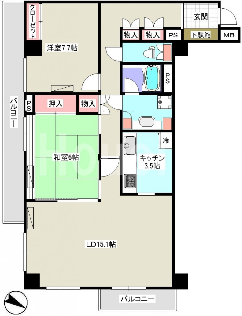 | 間取り | 2LDK | 間取り詳細 | LD15.1 K3.5 洋室7.7 和室6 | 専有面積 | 81.64㎡ |
